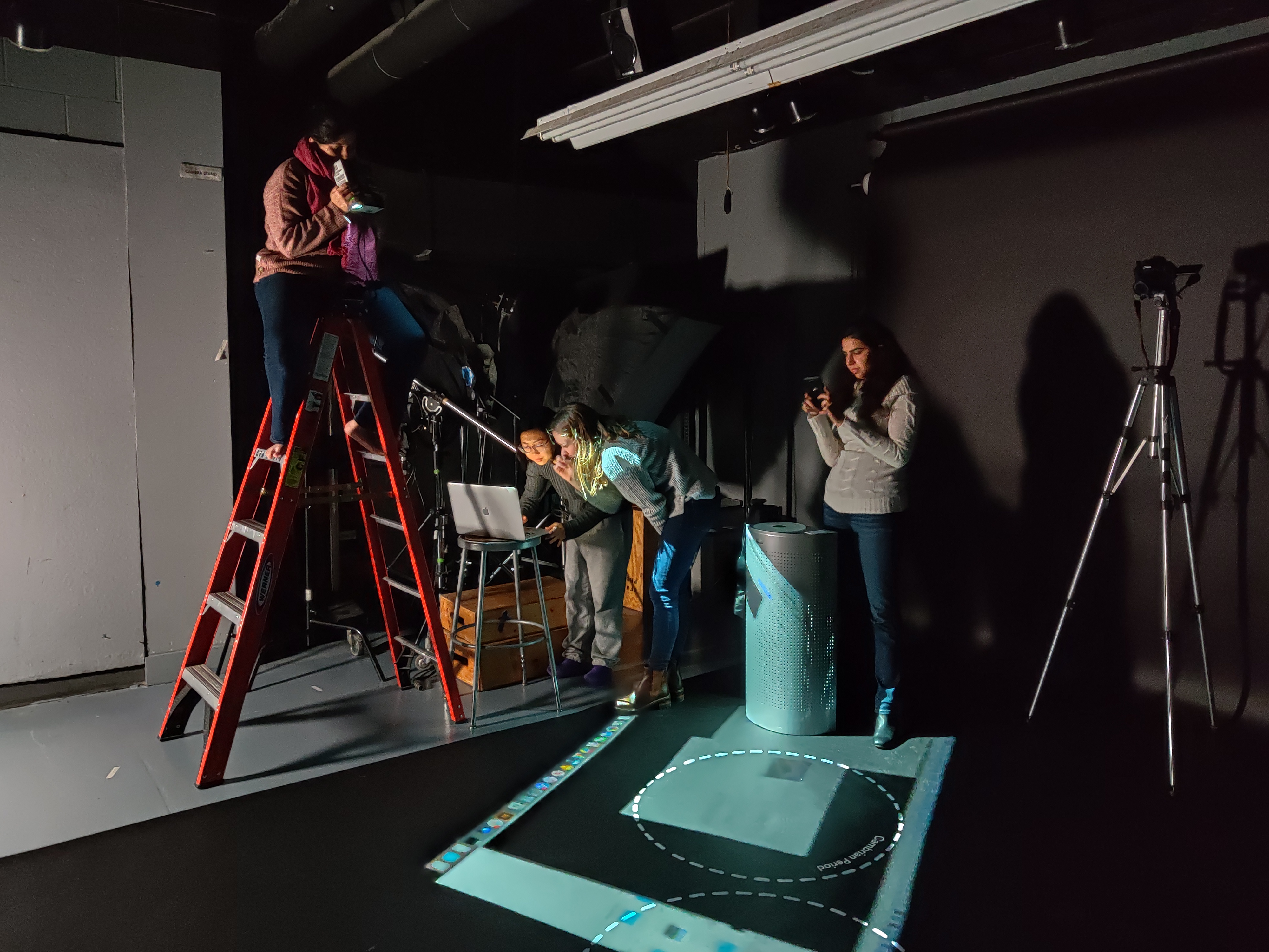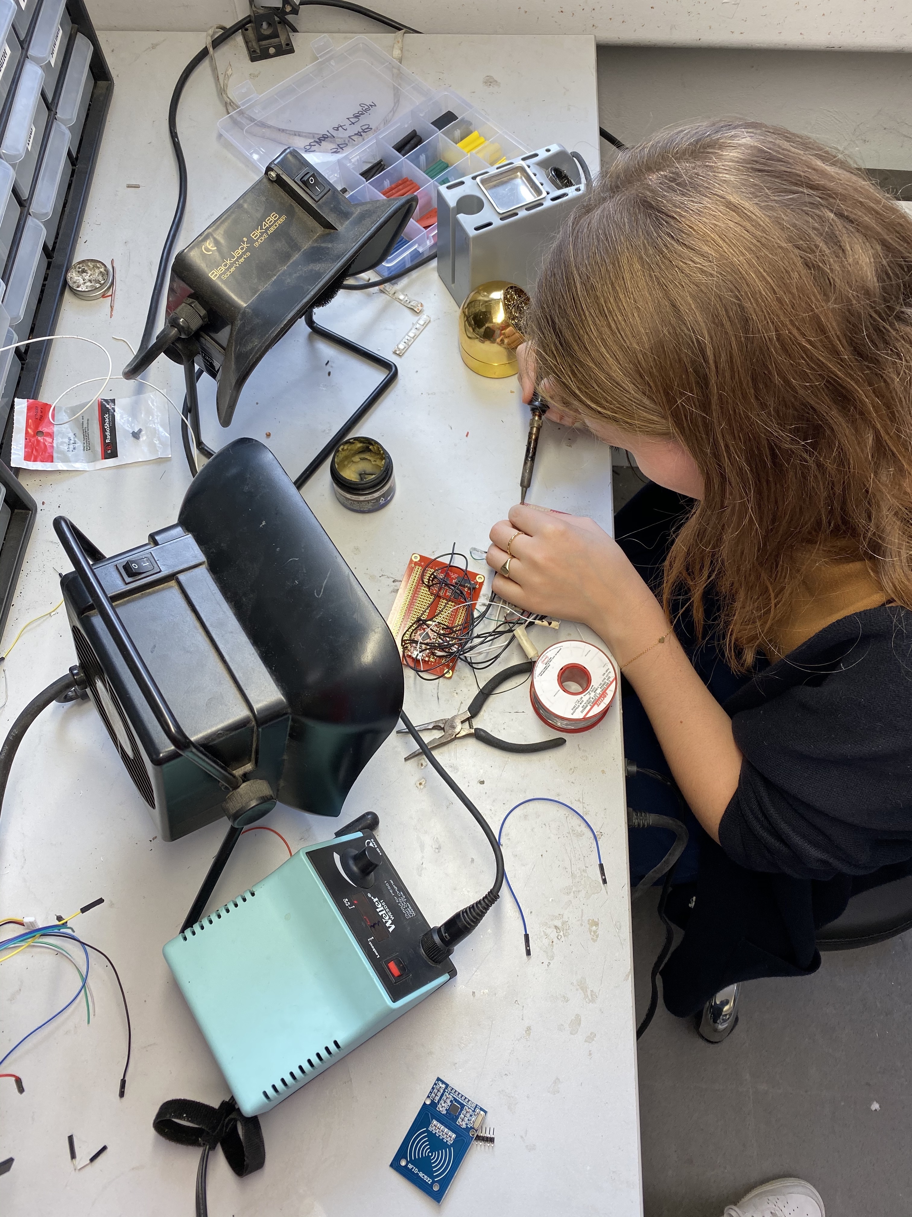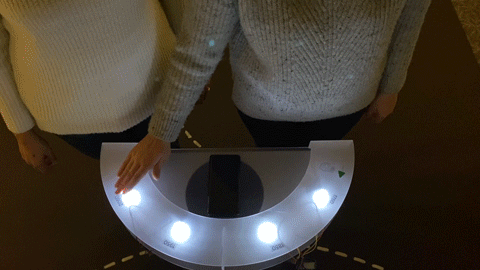 Video Production - we wanted our video to be as real as possible, by working with physical prototypes we were able to realise that. However, we were not allowed to shoot at the museum which meant we had to recreate the space as close to reality as possible. This was quite tricky but after 5 takes in 2 different spaces we finally found a room and lighting that worked. We even ended up painting the circles onto the floor by hand!