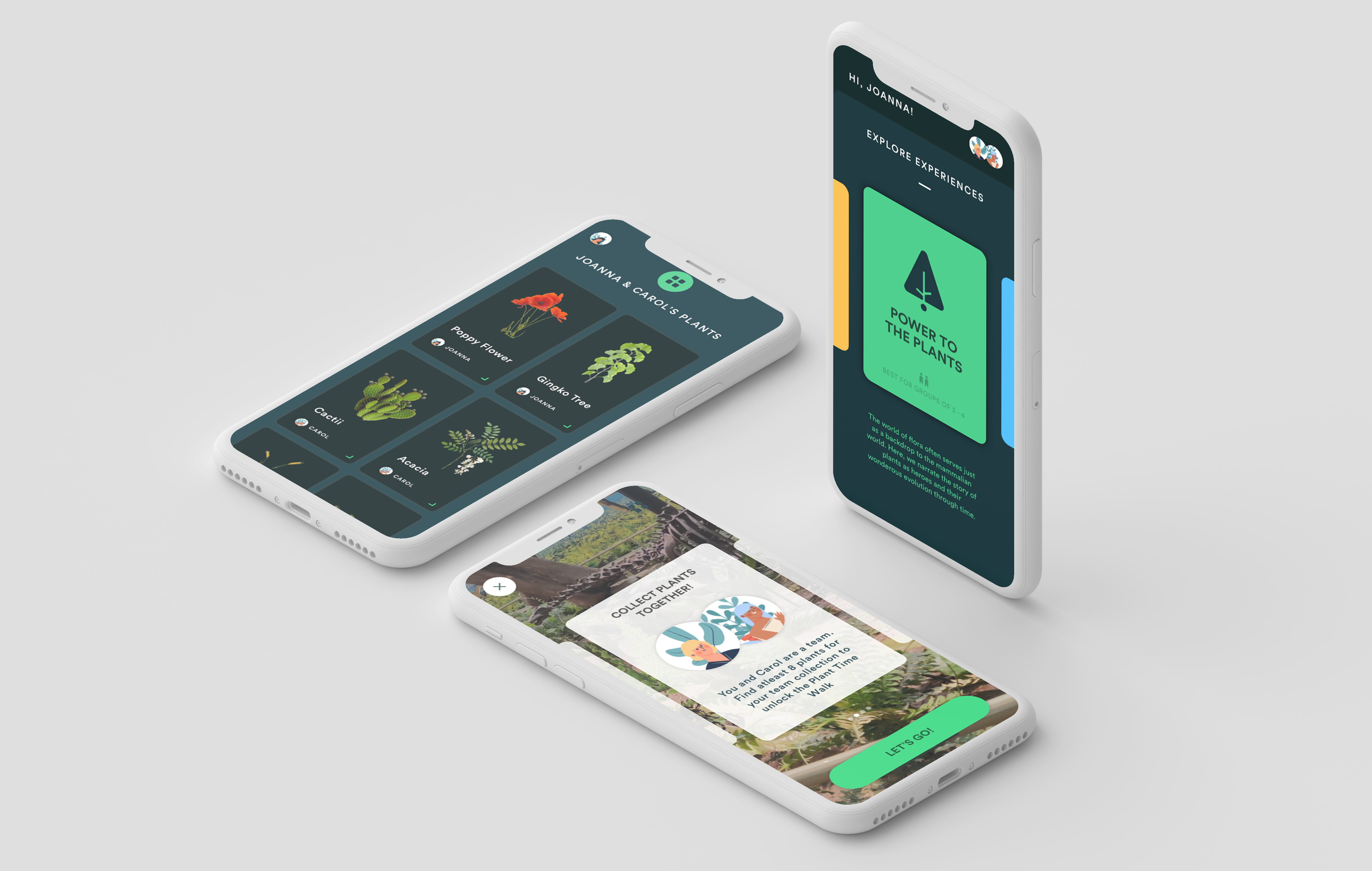 Our final design concept visualised the effect of climate change on vegetation by utilising deep time as a way to tell a story. By having visitors collect plants using AR throughout the existing museum exhibits we emphasised the importance of plants as part of the world ecosystems and that natural history is more than just dinosaurs! Also, by giving museum visitors different lenses to explore the natural history museum we increased engagement for returning visitors. After collecting the plants throughout the exhibits the users are invited to view their plant collection in the form of a deep time walk. Their collection is projected on the floor and tracks them as they physically walk through the different eras of natural history accompanied by an explanatory narration, ending in a reflection about the Antropocene.