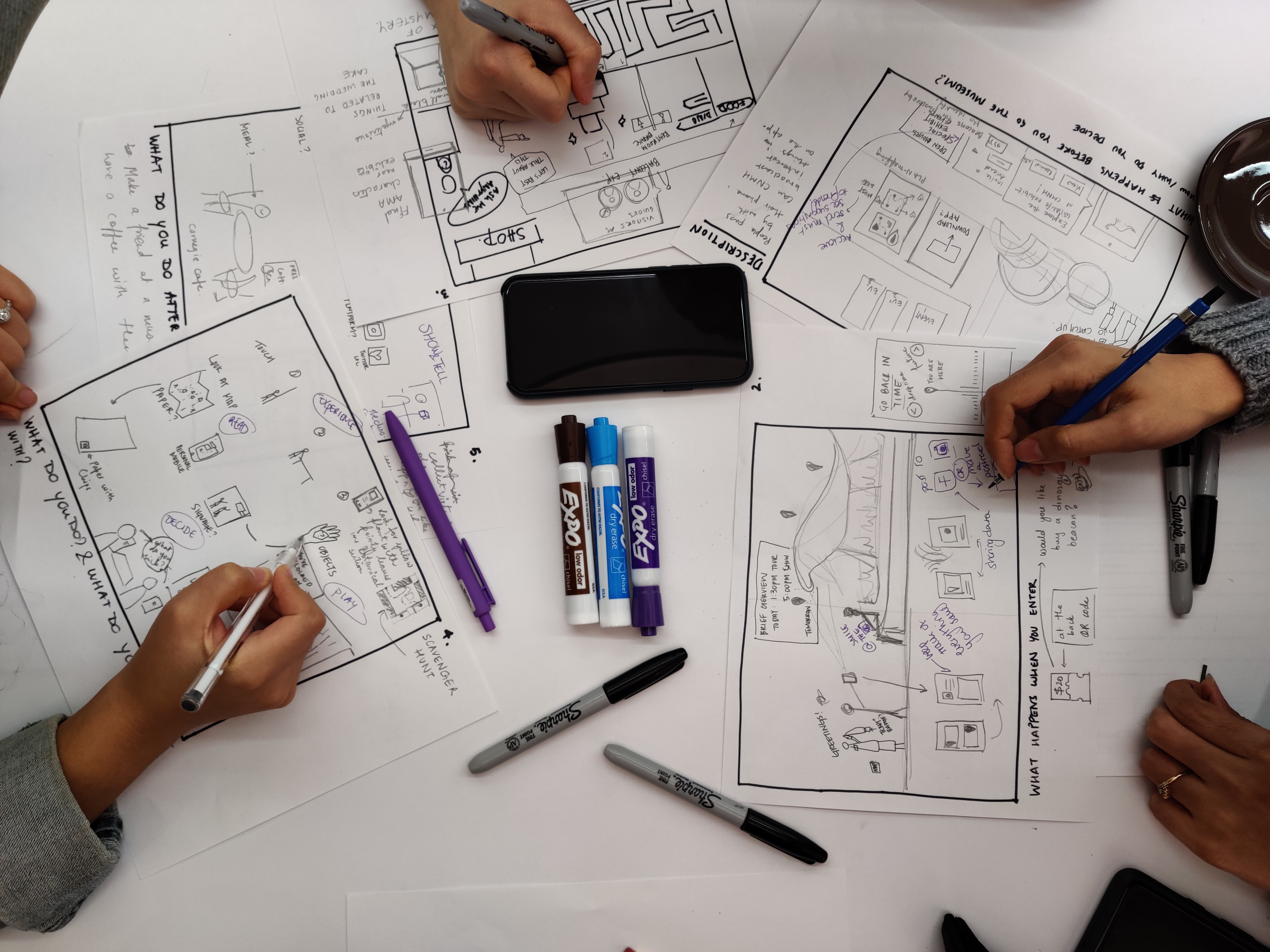 Immersive technology exploration - part of the brief was to make it a multi sensory experience, we explored different technologies that could aid in achieving this: Virtual Reality (VR), Projection Mapping and Augmenten Reality (AR). We ended up settling for a combination of projection mapping and AR because we felt VR was too anti-social.